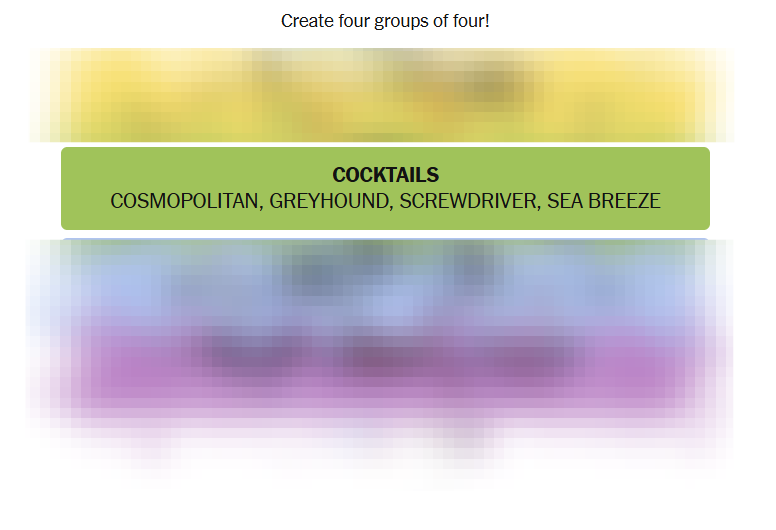 Today’s grid felt playful and balanced: two groups leaned on pop-culture and cocktails, one on clothing/accessory terminology, and one on a sly linguistic trick where the first word echoes a verb meaning “to eat.” Solvers who spotted the starter-words early gained a big advantage.