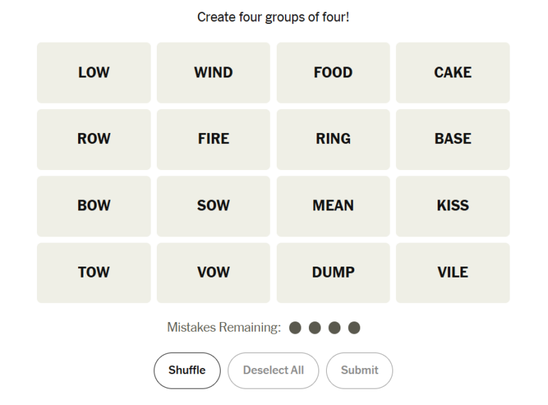 Today’s grid had a satisfying balance of clarity and misdirection. Some categories were relatively easy to spot, especially those tied to real-world objects or events, while others required a closer look at language nuances. The presence of words with multiple meanings added a clever twist that likely slowed many solvers down before the final grouping clicked.