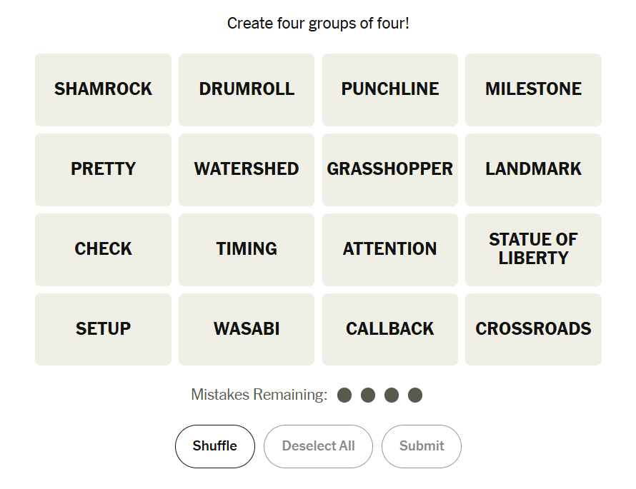 Today’s Connections puzzle leans heavily into verb-based thinking and lateral associations. Some groupings feel intuitive, while others rely on spotting patterns beyond surface meanings. The anagram set is especially tempting early on, while the final category rewards solvers who recall classic childhood games.