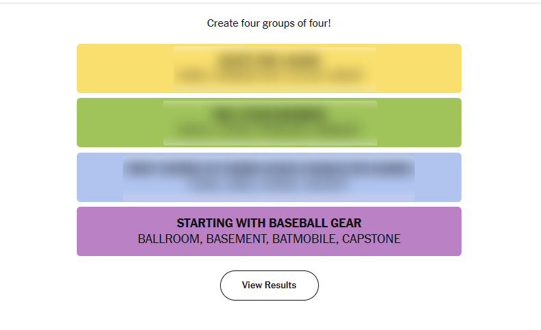 Today’s Connections puzzle leans heavily into entertainment and sports references with an interesting twist of character name recognition. Some groupings feel intuitive to pop culture enthusiasts, while others require deeper lateral thinking around shared linguistic patterns. The Robin Hood category is especially clever, while the hockey reference group rewards sports fans. A playful mix that keeps solvers engaged across different knowledge domains.