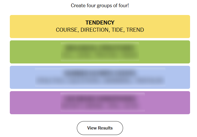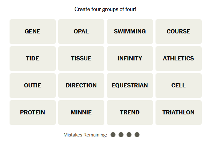Difficulty sits around medium: most groups feel “gettable” once you see the link, but there are just enough overlapping meanings to burn through your mistakes if you rush.