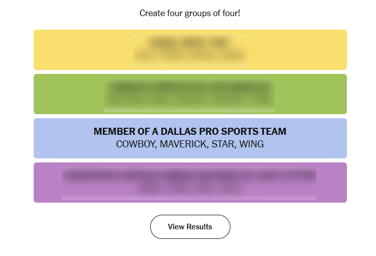 The 8 December 2025 grid presented one group of verbs describing encouragement or motivation, one geography set featuring famous Los Angeles locations, a collection of Dallas sports team names, and a mysterious fourth category requiring careful pattern recognition. Solvers likely made quick work of the motivational verbs and geographical references, then paused at the more abstract final grouping.