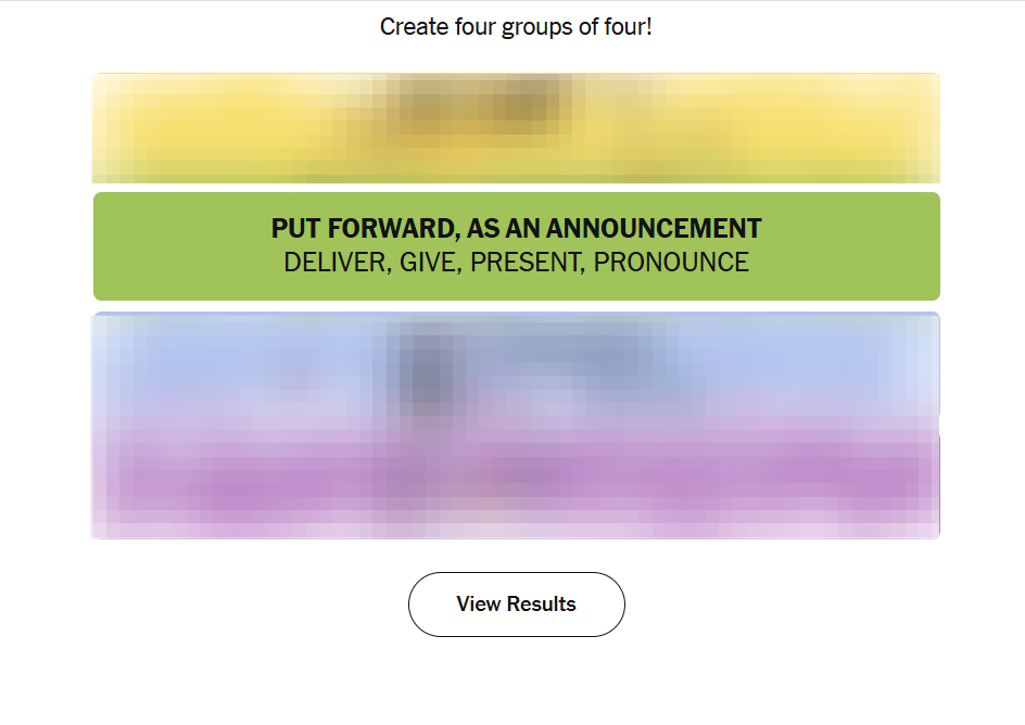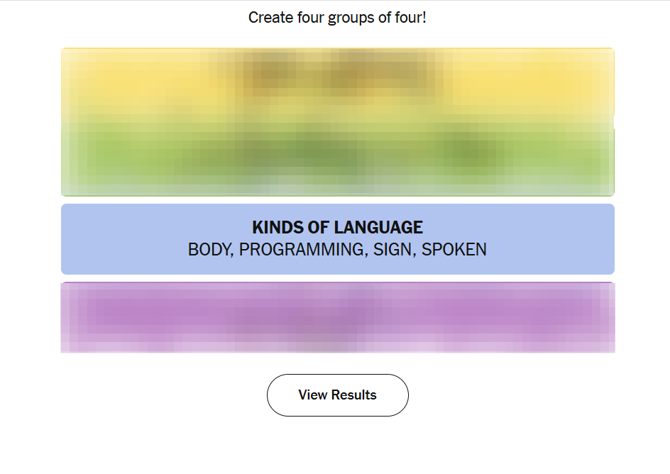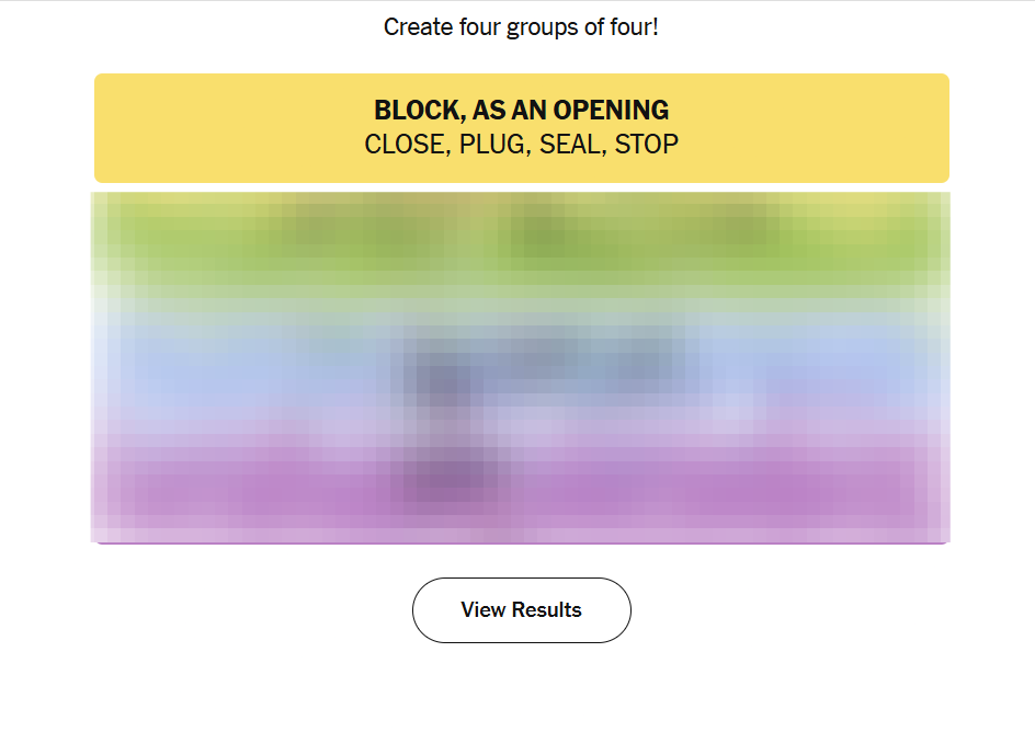This puzzle rewards literal thinking and a tiny bit of sound-checking. Best solve order: lock the concrete visual groups first (block/close words and language types), then the announcement verbs, and finish by saying the purple words with “I” in front — the homophone/prefix trick clicks fast when spoken aloud.