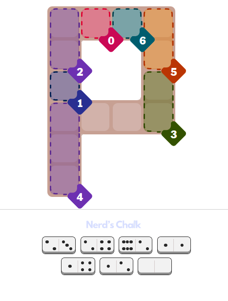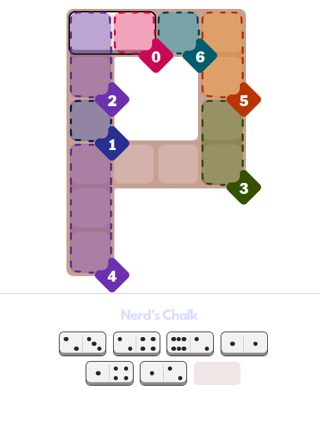- Number (e.g., "2", "7"): The sum of pips in that region must equal this number.