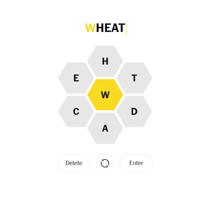 Quick refresher: you can only use the seven given letters to make words, every word must include the center letter W, and words must be at least four letters long. Letters can be repeated as often as needed.