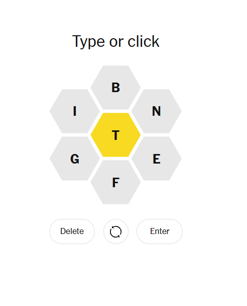 Today’s letters — T, B, E, F, G, I, N — form a hive that’s dynamic and sharp. You can sense how these letters push you to think differently, to mix intuition with logic.