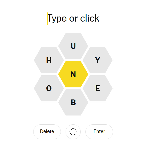 With N locked in the center, today’s puzzle encourages building outward using a balanced mix of vowels and consonants. The presence of both Y and U adds flavor, while B and H open the door to cozy, homey words. The hive feels fairly open, but longer words take some experimentation to uncover.
