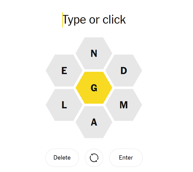 Today’s hive placed G in the middle, surrounded by A, D, E, L, M, and N. The set felt fairly tight, with limited vowel flexibility but good potential for longer constructions. Repeated-letter words helped open things up, and the presence of both M and N nudged solvers toward layered, compound-style words rather than short bursts.
