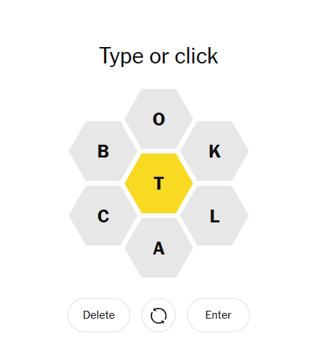 Today's hive placed T in the middle, surrounded by A, B, C, K, L, and O. The set felt approachable, with solid vowel support and familiar consonant pairings that opened doors to multiple word families. The repeated-letter potential—especially with words containing double T, double L, or double O—meant patient players could unlock surprising depth. The presence of both hard consonants (C, K, B) and softer letter combinations made this puzzle feel more generous than most.