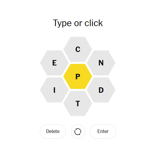 Today’s hive features P as the center letter, anchoring a wide mix of consonants and vowels: C, E, N, I, T, and D. The combination allows a generous number of word paths, though the consonant clustering can make longer constructions feel unexpectedly restrictive. Still, the puzzle offers varied opportunities for sharp players who enjoy exploring structural patterns.