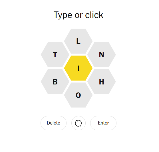 It’s the only word in the set that uses every available letter: B, I, L, T, O, N, H — with I as the center.