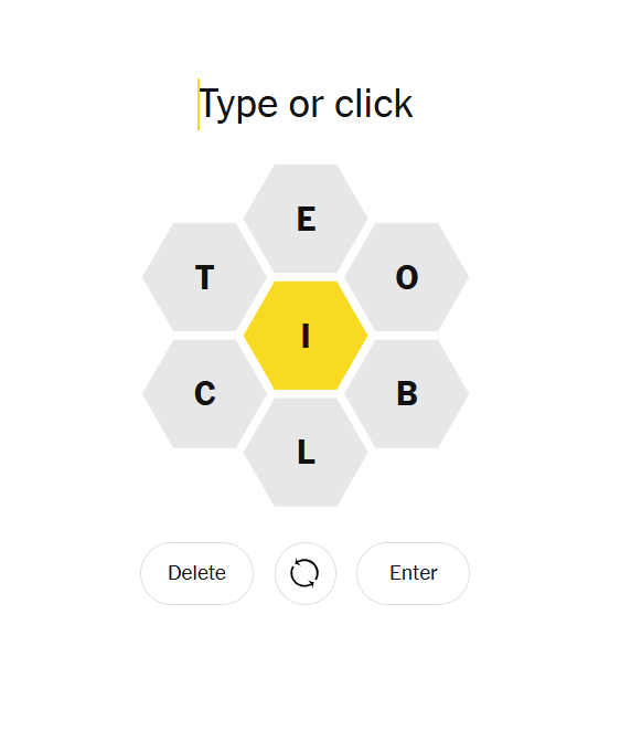 Today’s hive puts I in the center, surrounded by T, E, O, B, L, C. It’s a tidy, satisfying set — one that rewards both quick four-letter wins and a little patience to spot longer, high-scoring words. Play around with common endings (-IT, -LE, -TO) and the pangram will start to peek through.