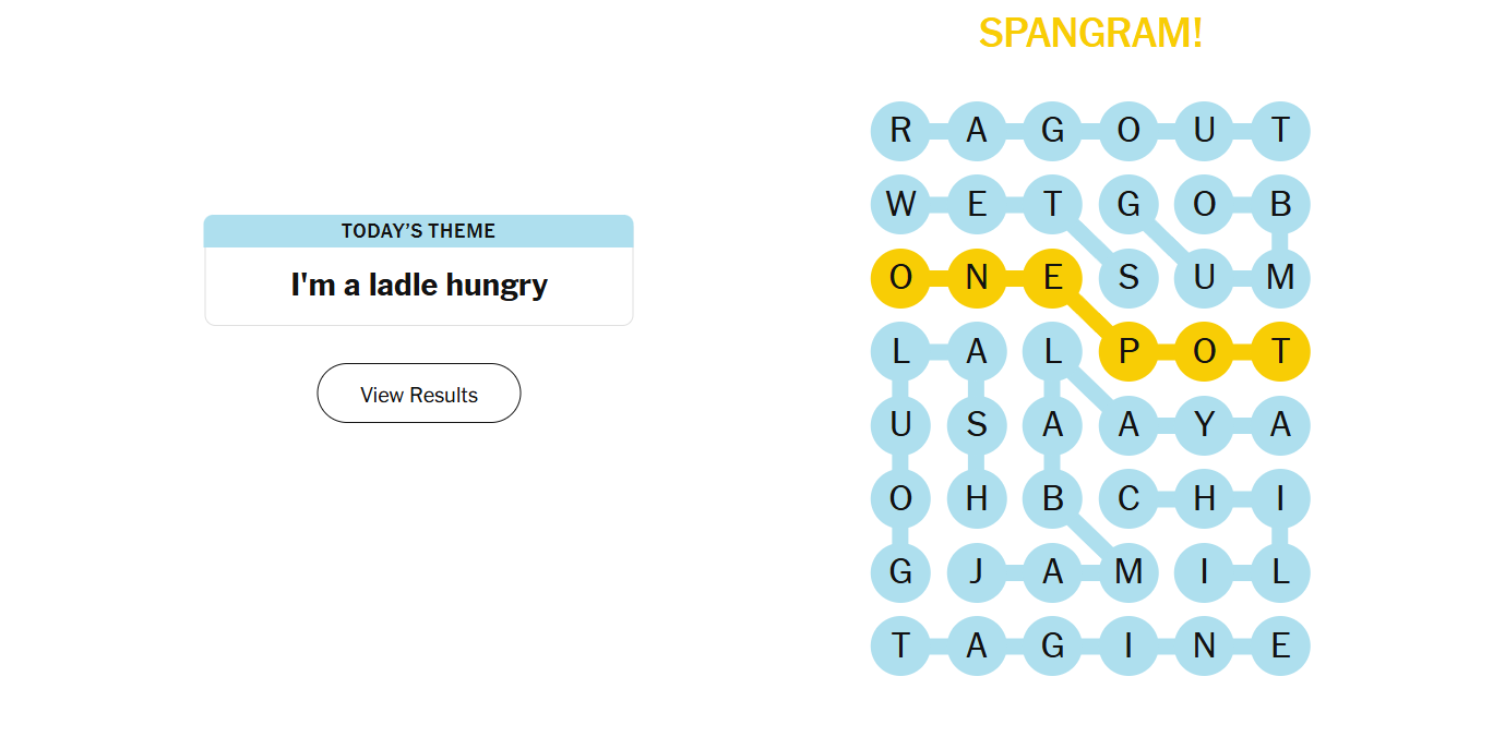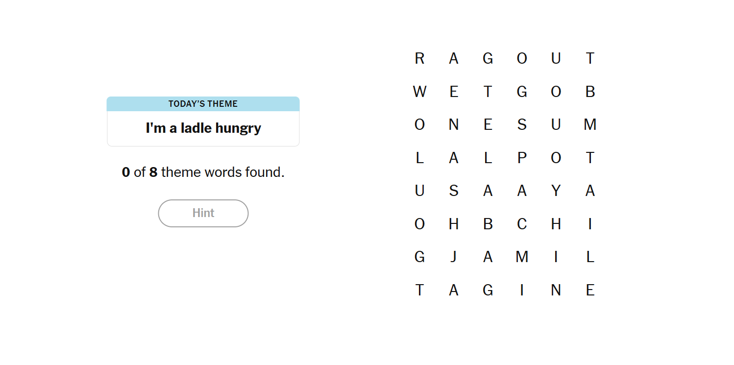Today’s Strands simmered with savory goodness. The theme “I Am Ladle Hungry” took us straight to the kitchen — celebrating the comfort of one-pot meals that warm you from the inside out.