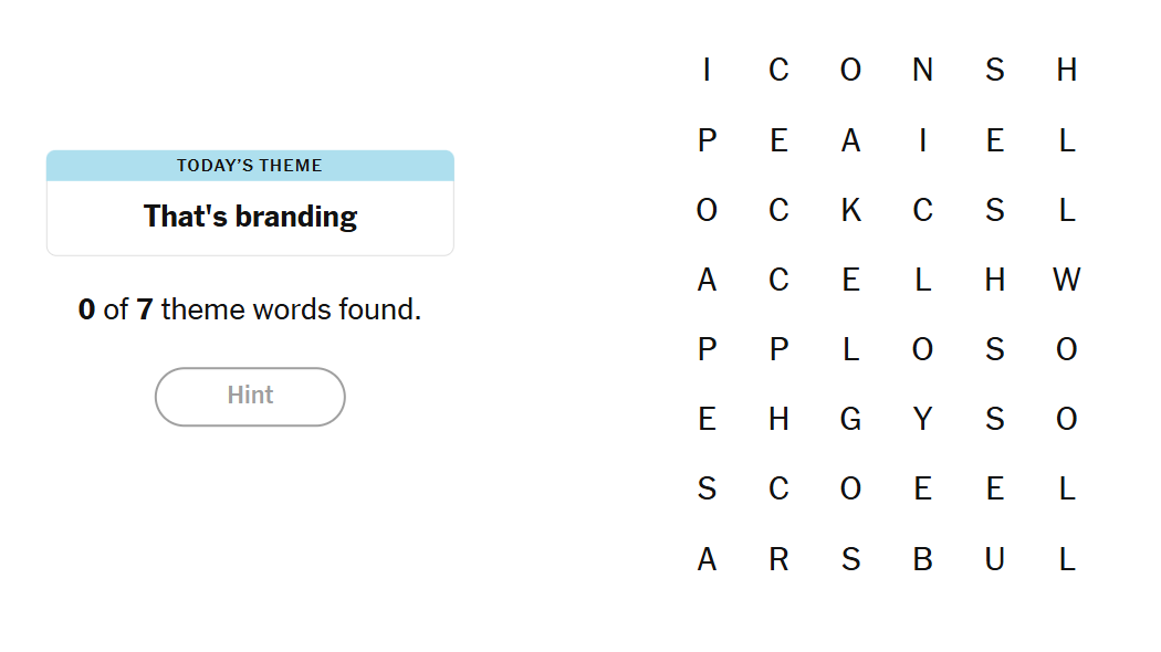 - To earn a hint, find any non-theme word of at least four letters in the grid.