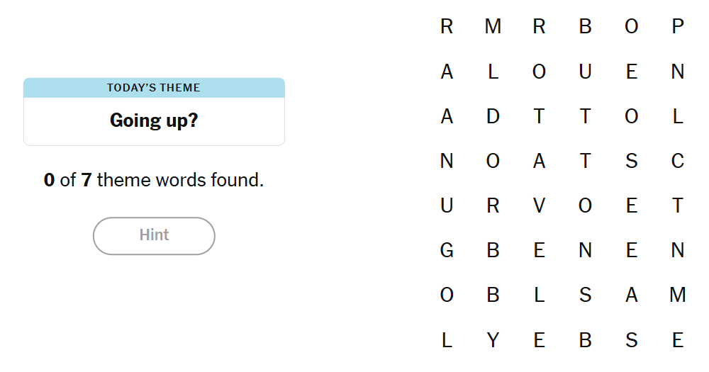 15 October 2025 NYT Strands Theme: “Going up?”