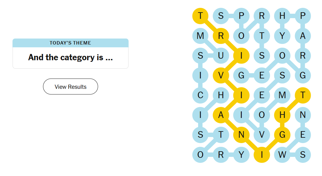 16 October 2025 NYT Strands Theme: “And the Category is...”