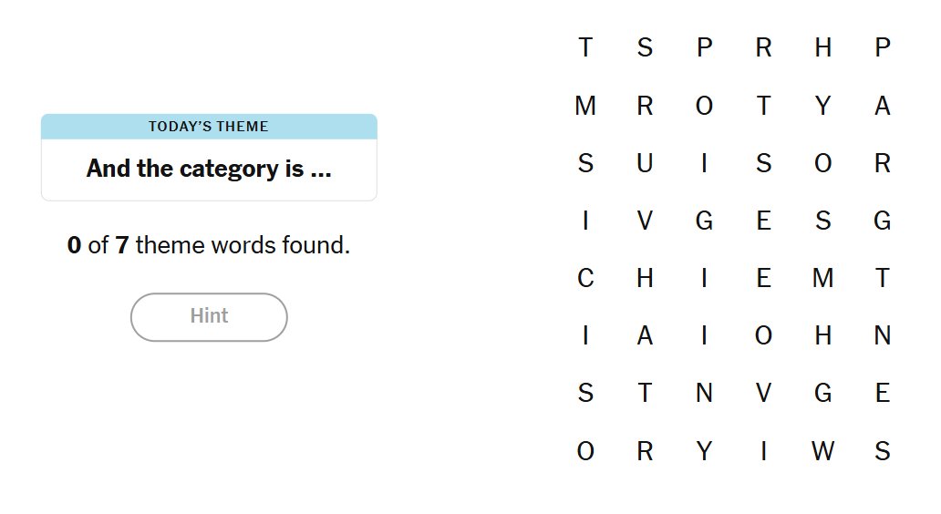- To earn a hint, find any non-theme word of at least four letters in the grid.