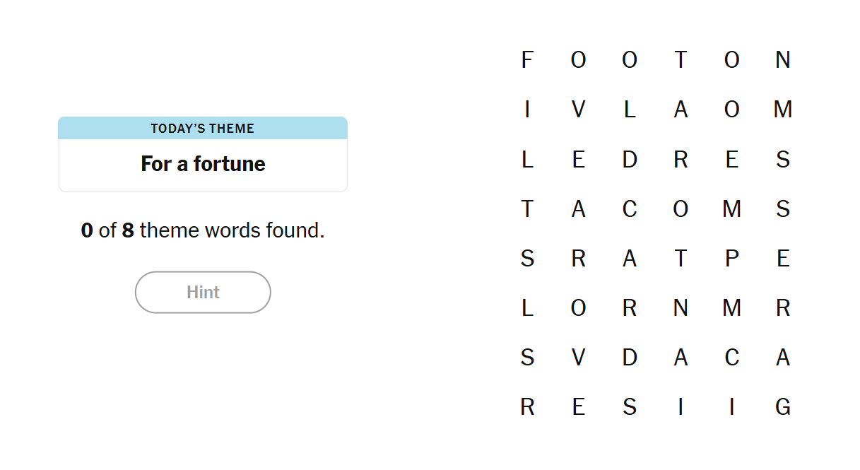 - To earn a hint, find any non-theme word of at least four letters in the grid.