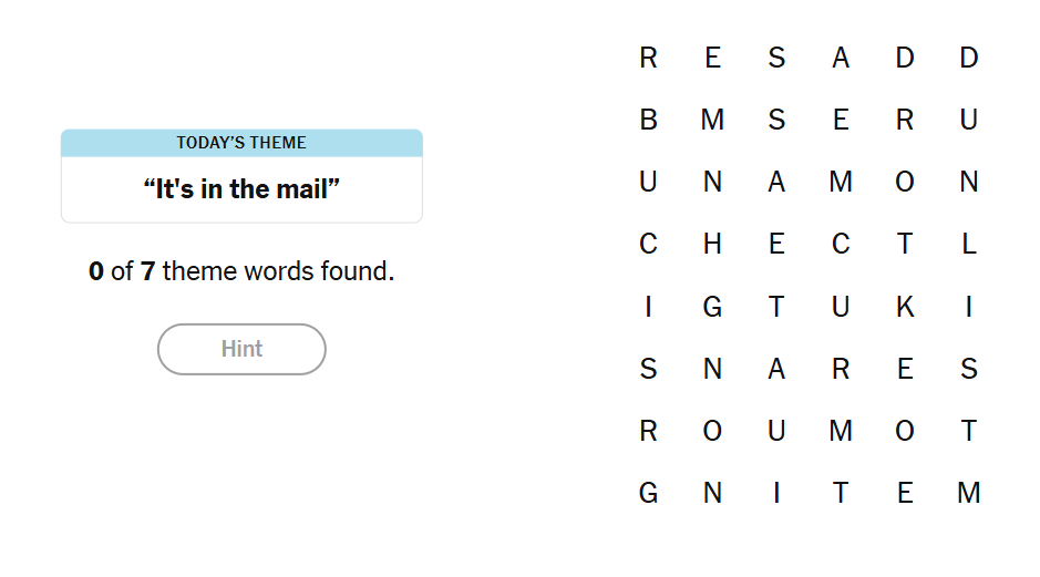 - To earn a hint, find any non-theme word of at least four letters in the grid.