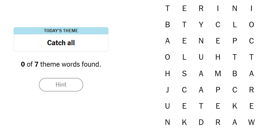 - To earn a hint, find any non-theme word of at least four letters in the grid.