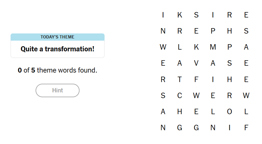 25 October 2025 NYT Strands Theme: “Quite a transformation”