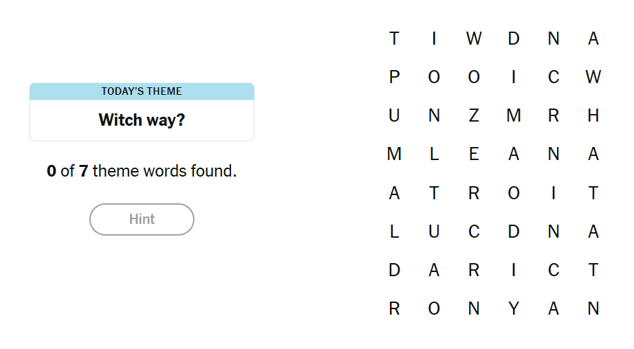- To earn a hint, find any non-theme word of at least four letters in the grid.