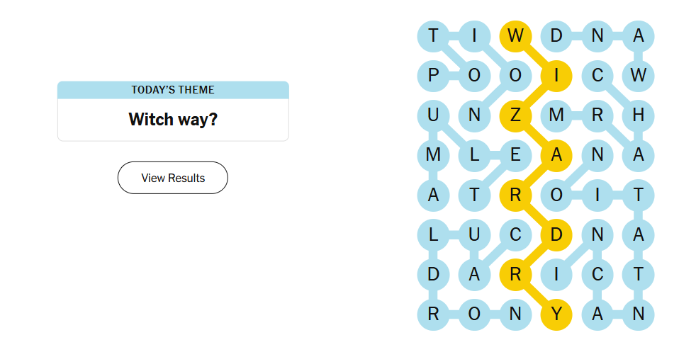 27 October 2025 NYT Strands Theme: “Witch way?”