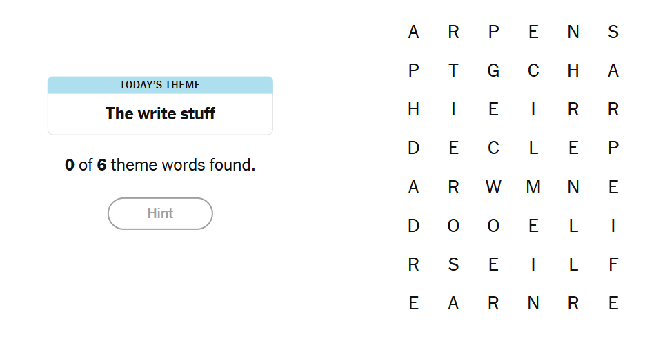 - To earn a hint, find any non-theme word of at least four letters in the grid.