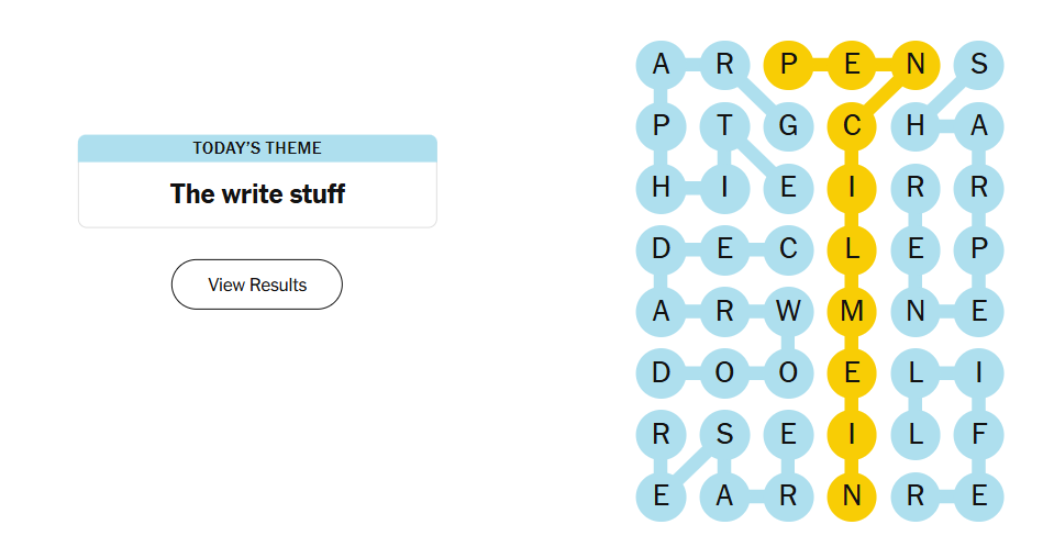 Today’s Strands was a love letter to writing itself — the feel of sharpened pencils, the scent of cedarwood, and the simple joy of creation. With the theme “The Write Stuff”, it celebrated the humble tools that have fueled ideas, art, and imagination for centuries.