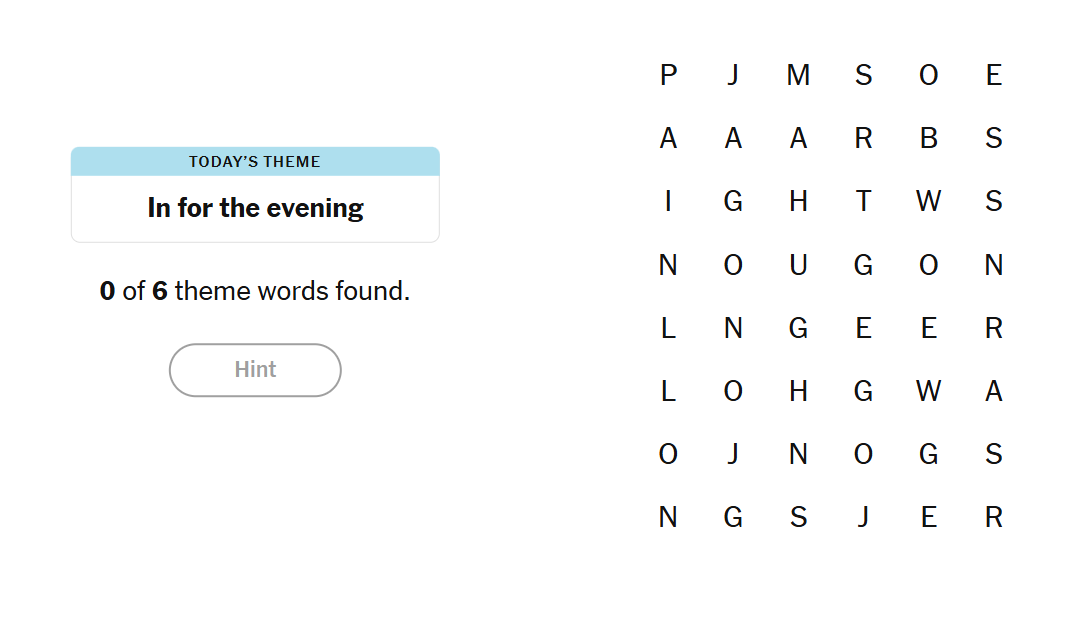 6 October 2025 NYT Strands Theme: “In for the evening”
