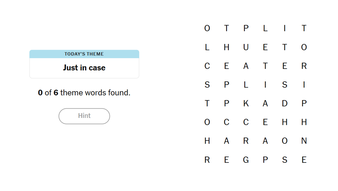 9 October 2025 NYT Strands Theme: “Just in Case”