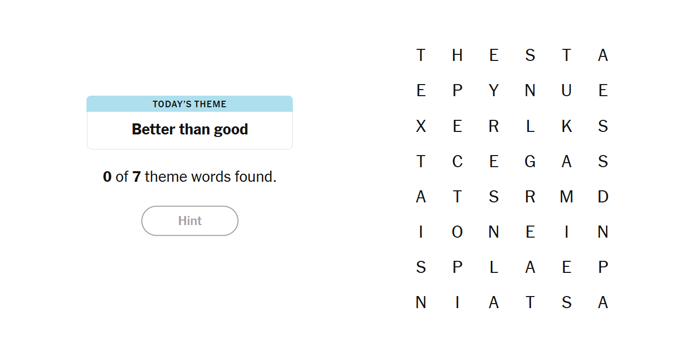 - To earn a hint, find any non-theme word of at least four letters in the grid.