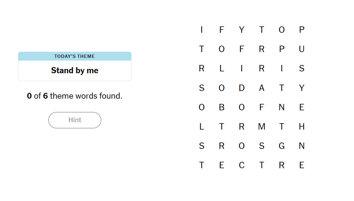 - To earn a hint, find any non-theme word of at least four letters in the grid.