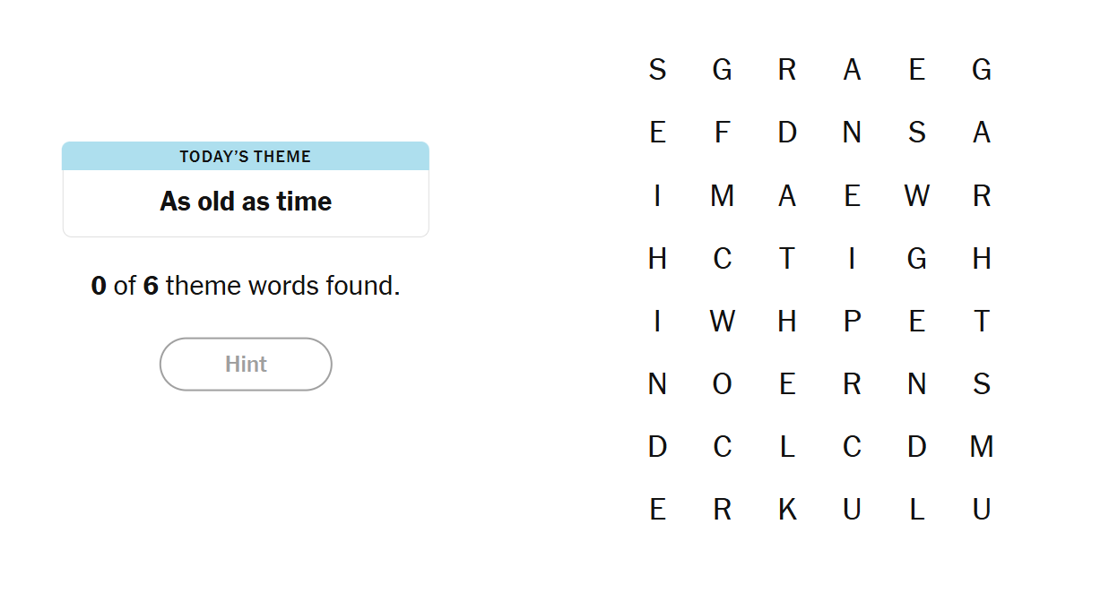 Today’s Strands ticks and tocks with an elegant theme rooted in the passage of time. “As Old as Time” takes us inside the workings of a classic timepiece — one that stands tall in the corner of history: the grandfather clock.