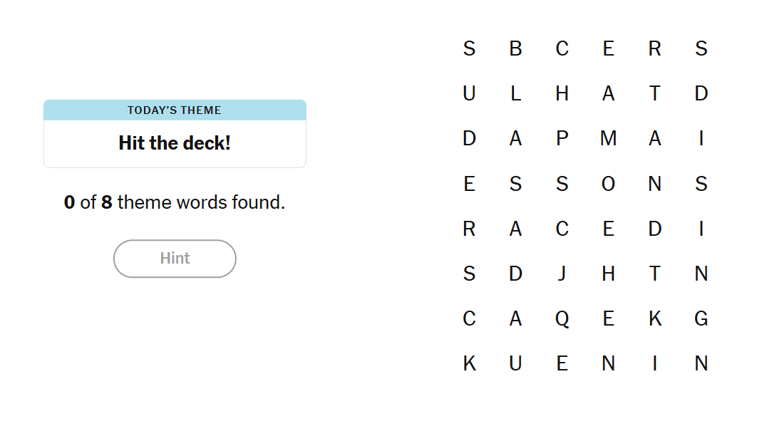 28 September 2025 NYT Strands Theme: “Hit the Deck!”