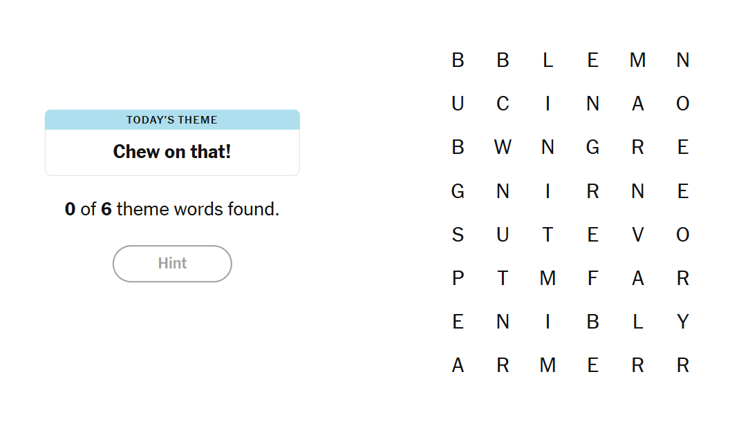 - To earn a hint, find any non-theme word of at least four letters in the grid.