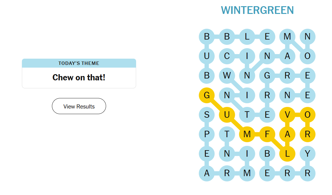 Today’s Strands was a sweet treat! The theme “Chew on That” took solvers straight to the world of chewing gum — from fruity bursts to minty classics.