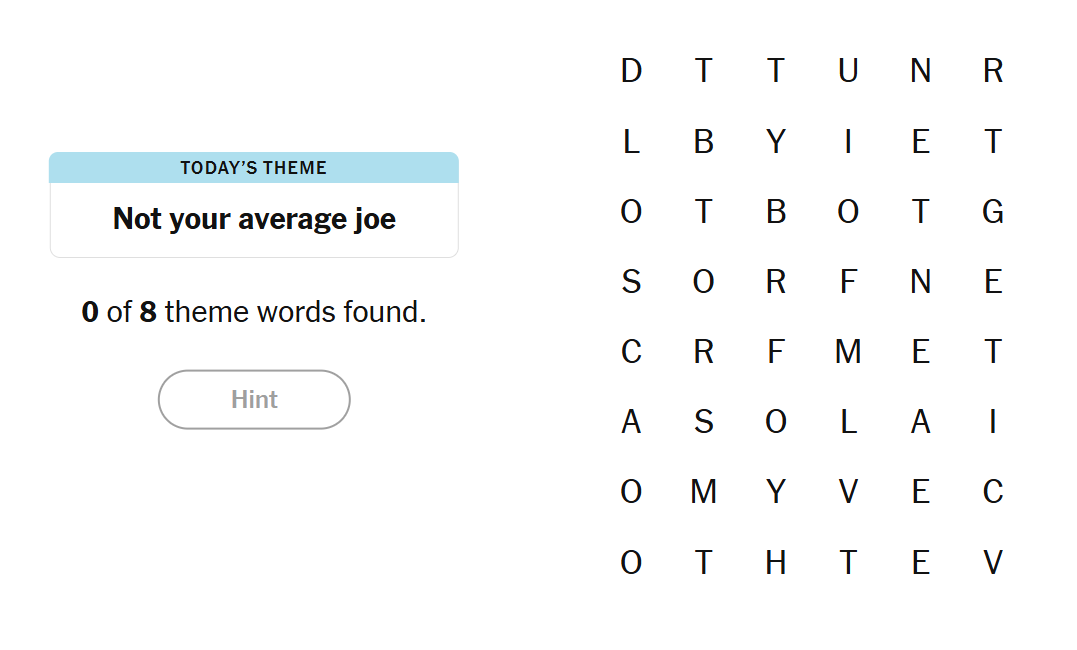 - To earn a hint, find any non-theme word of at least four letters in the grid.