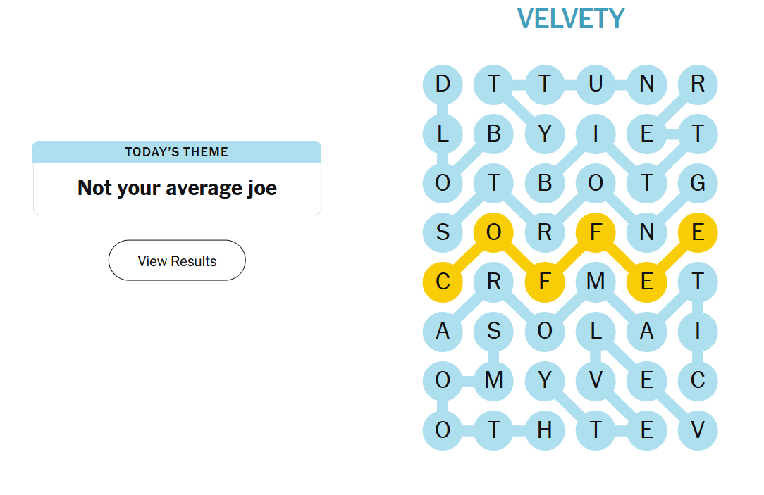 Today’s theme leaned into sensory language rather than literal objects. Instead of naming items directly, the puzzle focused on qualities and impressions, making it feel a bit more refined. The spangram itself was short and straightforward, but the surrounding words required thinking in terms of taste, texture, and aroma.