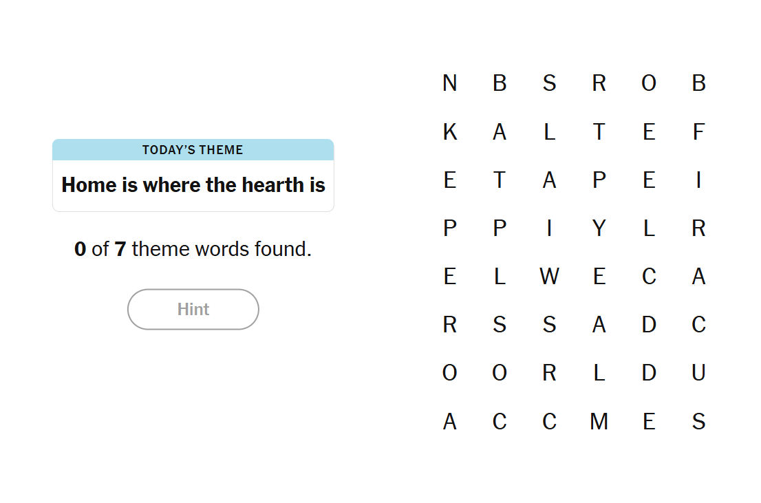 01 January 2026 NYT Strands Theme: “Home is where the hearth is”
