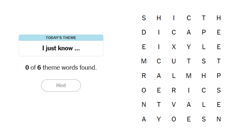 - To earn a hint, find any non-theme word of at least four letters in the grid.
