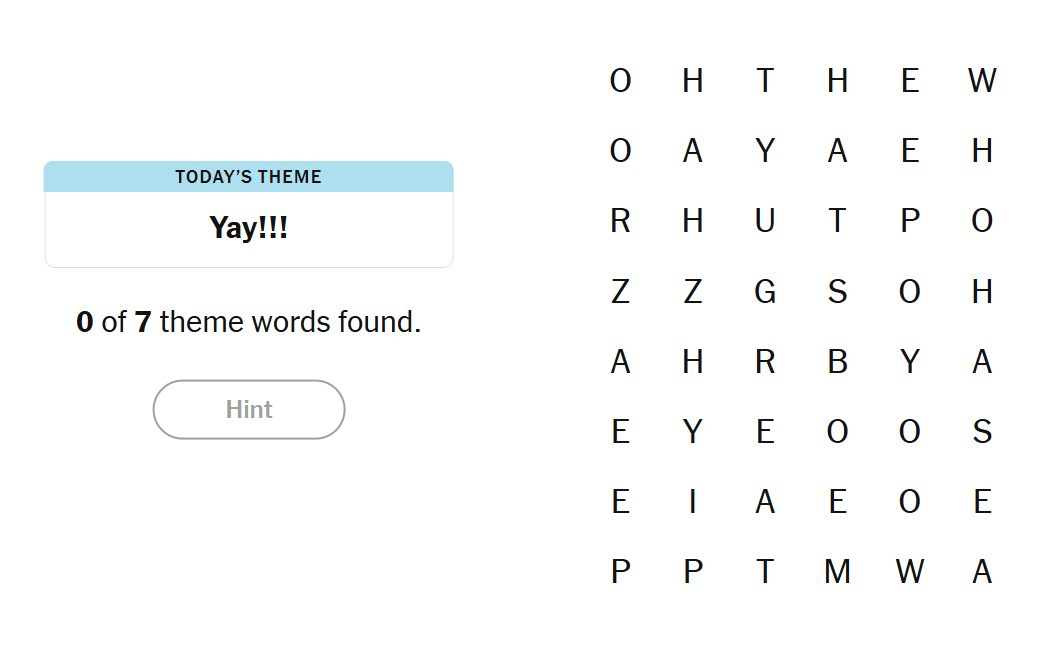 - To earn a hint, find any non-theme word of at least four letters in the grid.