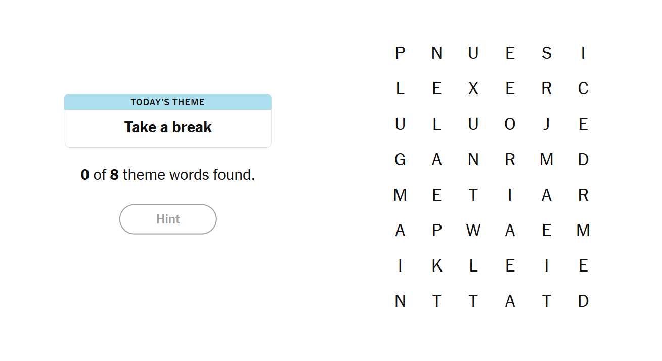 - To earn a hint, find any non-theme word of at least four letters in the grid.