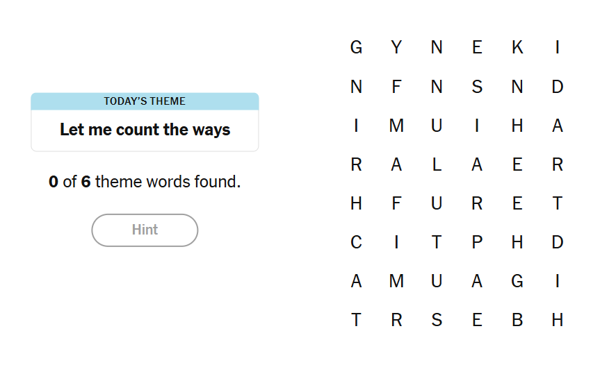 16 December 2025 NYT Strands Theme: “Let me count the ways”