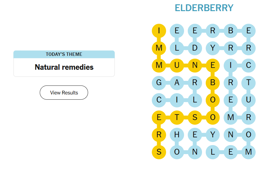 The spangram sums up the entire theme by highlighting how each word represents a natural ingredient traditionally believed to support and strengthen the immune system.