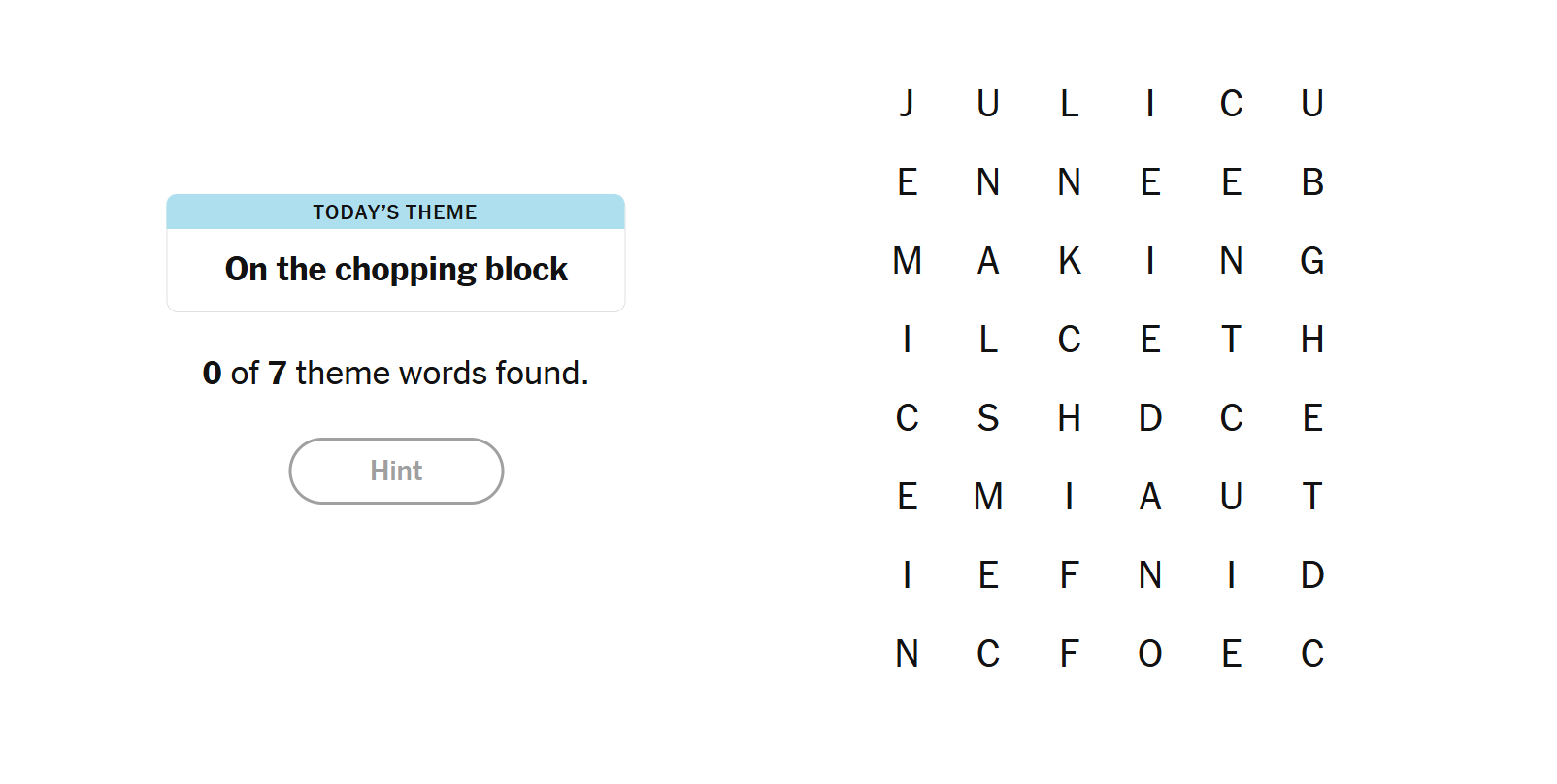 Each puzzle usually has around 6–8 theme words.