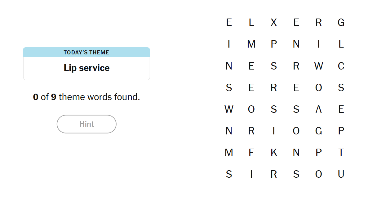 Today’s Strands is all about what plays across our faces — the subtle (and not-so-subtle) ways we communicate without words. The theme “Lip Service” brings out every kind of facial expression, from smiles to sneers.