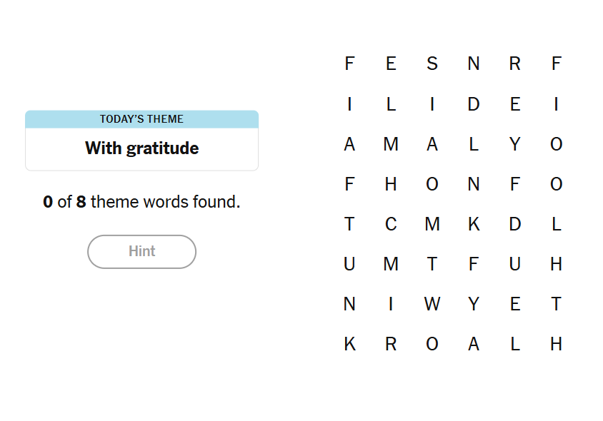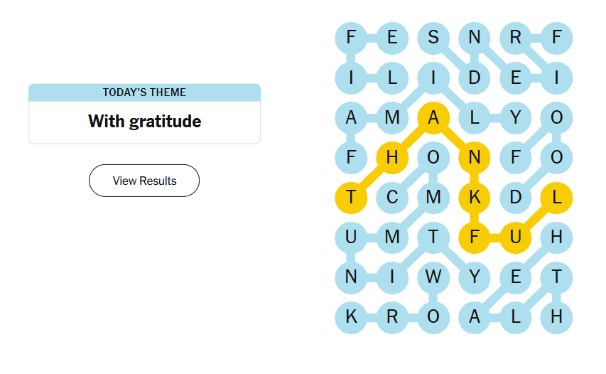 27 November 2025 NYT Strands Theme: “With gratitude”