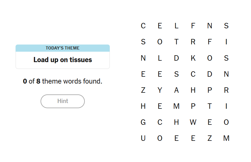 28 December 2025 NYT Strands Theme: “Load up on tissues”