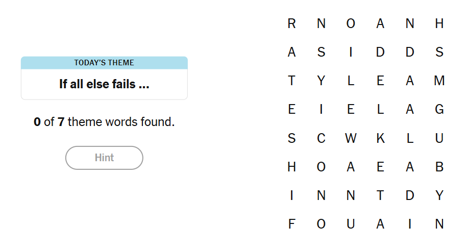 28 November 2025 NYT Strands Theme: “If all else fails ...”